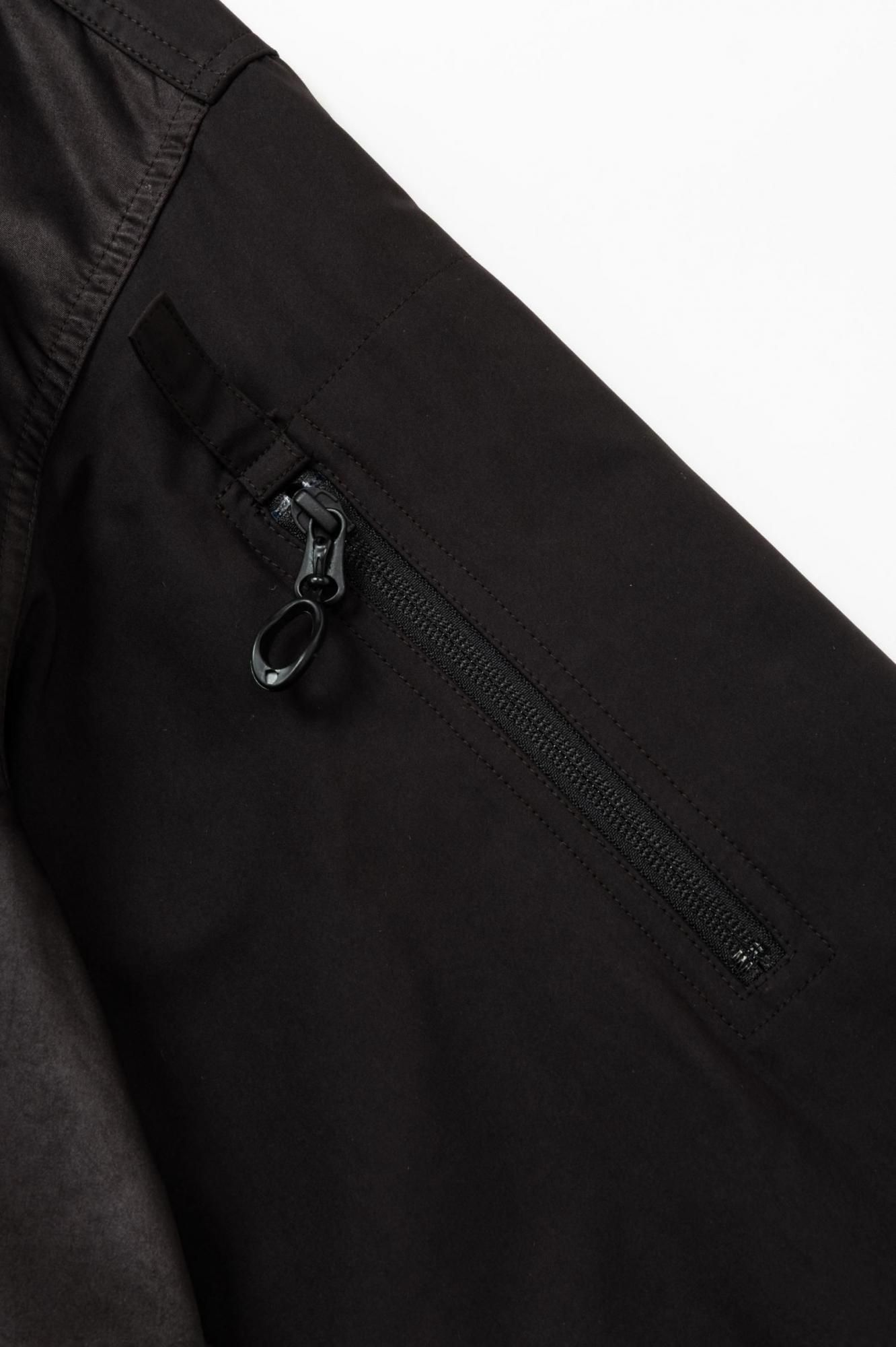 左胸にはフラップアンドパッチポケット、袖のポケットにはジッパータブを設け、